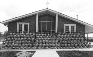 In 1959, Father Landers (Panania) and Father Carr (Revesby) accompanied Mother Leone Ryan, the Superior of the Sisters of St Joseph, in search of a suitable site for a new girls’ high school to be built in south-western Sydney. At this time the population of the area was increasing rapidly and the parishes were unable to meet the costs of building such a school. The search ended with the purchase of the land on which the school now stands.